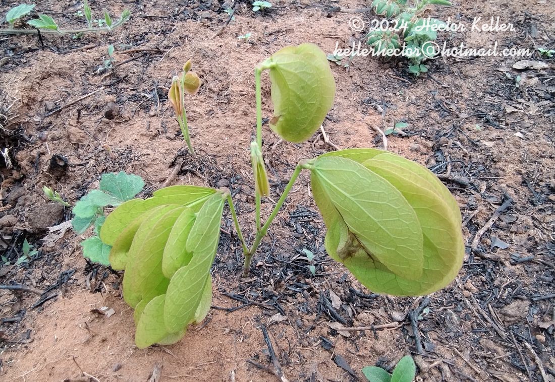 Subarbustos bajos, aprox. de 0,3-0,65 m de alt., glabros. Estípulas persistentes, ovado-triangulares, estriadas, pilosas. Hojas uniyugadas, subglabras; pecíolo de 2,5-6,3 cm long.; pinnas 1 ½-yugadas, folíolos de 3,3-7,5 x 1,3-5,5 cm, obovados a orbiculares, coriáceos, glabros. Espigas capituliformes axilares, glabras; cáliz verdoso, corola rojiza en el ápice; estambres blancos en la ½ basal, carmesí en la ½ apical. Legumbres angostas, glabras.