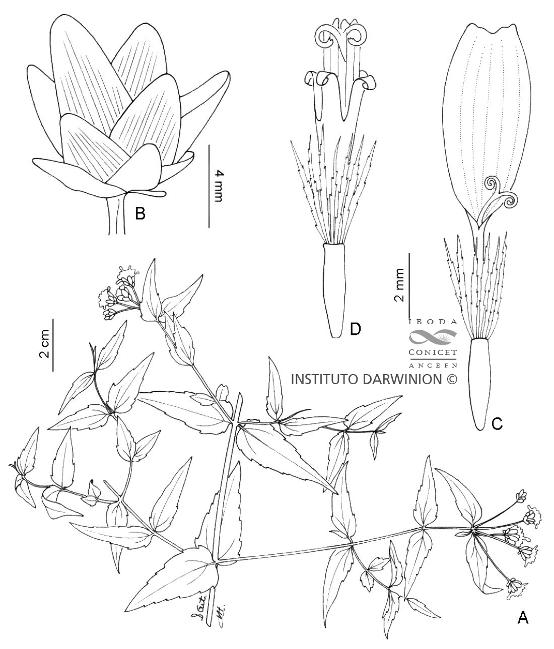 Subarbustos o arbustos escandentes, o lianas, hasta de 3,5 m de alto, con tallos muy ramificados, apoyantes o péndulos, subcilíndricos, costados, glabros. Hojas opuestas, pecioladas, con pecíolos de 0,5-1 cm de largo; láminas ovadas o subtriangulares, de 2,5-4,5 × 1-3 cm, base cuneada, truncada o redondeada, ápice agudo o acuminado, margen subentero, aserrado o lobulado, glabras en ambas superficies o raramente algo escabrosas en la haz. Capítulos heterógamos, radiados, en cimas umbeliformes terminales y axilares, pedunculados, con pedúnculos de 1,5-4 cm de largo, glabros. Involucro acampanado, de 8-9 × 8-9 mm; filarios 4-5-seriados, imbricados, los externos ovados, ca. 6 × 3,5 mm, ápice obtuso, margen entero o ciliado, glabros, los internos ovados u oblongos, ca. 7,5 × 2,5 mm, ápice redondeado, a veces agudo, margen ciliado, glabros. Receptáculo cónico, con páleas angostamente ovadas, ca. 6-8 mm de largo, conduplicadas, ápice atenuado, margen eroso o lacerado. Flores dimorfas, las del margen 5-10, pistiladas, con corola ligulada, de 7-8 mm de largo, amarilla, glabra, lígula obovada, ca. 4,5 × 2 mm, ápice 3-2-lobado; flores del centro numerosas, perfectas, con corola tubulosa, de 5,5-6 mm de largo, amarilla, glabra, 5-lobada, con lóbulos de 1,5-1,7 mm de largo. Aquenios angostamente obovoides u obpiramidales, de 2-2,3 × 0,3-0,5 mm, negros o castaños, glabros o glabrescentes. Papus formado por 12-18 páleas lineares o angostamente elípticas, ca. 3,8 mm de largo, ápice agudo o aristiforme, margen eroso, membranáceo.
