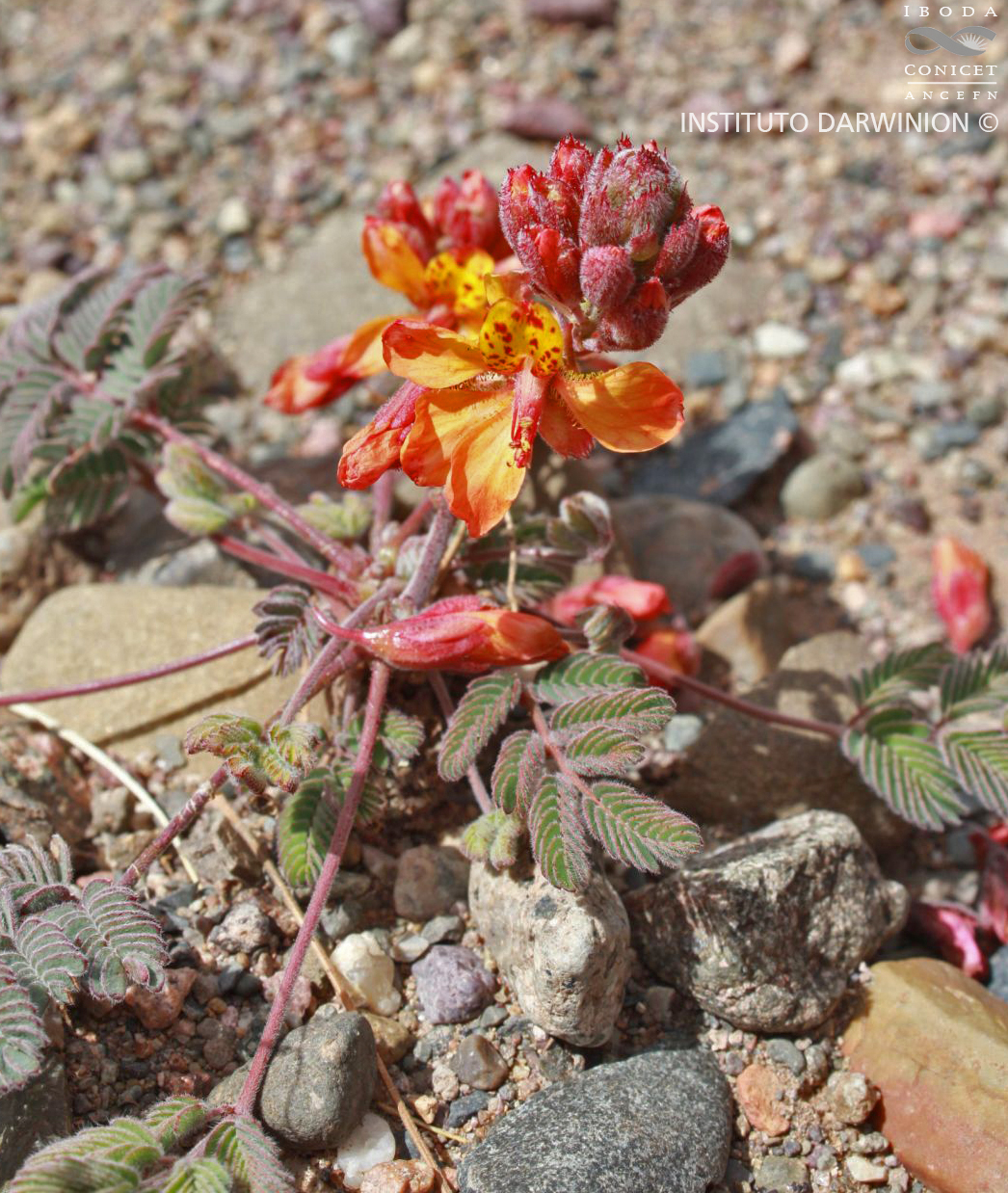 Hierbas caulescentes o subacaules, 5-30 cm alt., pubescente y glandulosa. Hojas 2-15 cm long.; estípulas anchamente ovadas 3 mm long. x 3 mm lat., papiráceas, blanquecinas; pinnas 2-6 pares; folíolos 4-12 pares, oblongo elípticos 2-11 mm long. x 1-3,5 mm lat., herbáceos, pubérulos o no. Racimos 12 cm long.; brácteas lanceoladas 4 mm long. x 3 mm lat., pedicelos 2-5 mm long.; hipanto 2 mm long., cáliz con sépalos 5-6 mm long. x 2,5 mm lat.; corola con pétalos 10 mm long. x 3-5 mm lat., androceo con estambres 7-9 mm long., ovario 4 mm long., subestipitado, con pequeños tricomas galndulosos; estilo 5-6 mm long. Legumbre incurva a semicircular 3-4 cm long. y diám. x 5 mm lat., con pubescencia inconspicua. Semillas 8-10, castaño-negruzcas, 2,5-3 mm long. x 3 mm lat.,