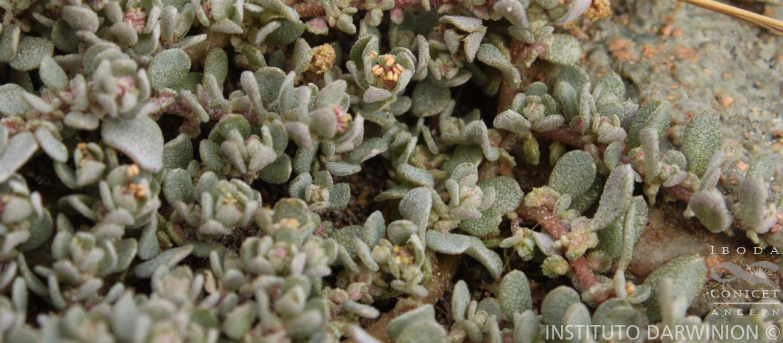 Plantas hemicriptófitas, monoicas, rastreras, muy ramificadas desde la base, formando matas densas, cenicientas o verde pálidas, hasta de 40 cm de diámetro. Hojas alternas, pecioladas o las superiores subsésiles, orbiculares, oblongas o espatuladas, de 2-15(-19) × 1-5 mm; margen entero; base decurrente; ápice redondeado o subagudo; anatomía Kranz. Inflorescencias en glomérulos; flores estaminadas en glomérulos multifloros, agrupados en espigas terminales cortas; flores carpeladas en glomérulos paucifloros, en la axila de hojas inferiores. Bractéolas fructíferas duras, brevemente pediceladas, rómbicas o ± orbiculares, de 2 × 1,8-3,6 mm, soldadas entre sí desde la base y por los laterales hasta la parte media de su longitud; margen superior entero o 3-5-dentado; cara externa lisa con nervios ± marcados, u ornamentada con verrugas o crestas. Semillas castañas; embrión con radícula ascendente.