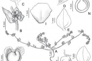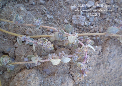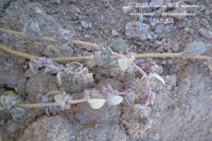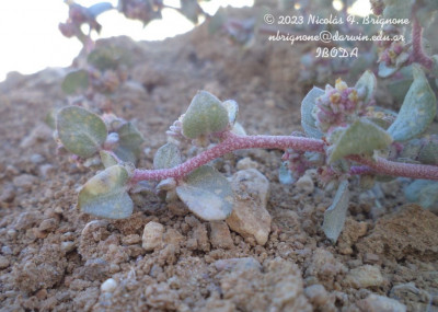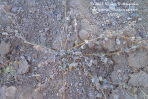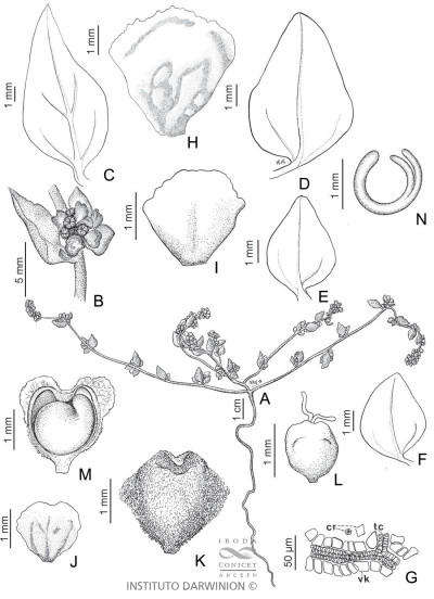 Plantas herbáceas, anuales, monoicas, postradas, de tonos cenicientos, de 1-2 cm de alto y 10-50 cm de diámetro; entrenudos hasta de 10 cm de largo. Hojas alternas, pecioladas, ovadas a triangular-ovadas, de 4-20 × 2-10 mm; margen entero; base truncada; ápice agudo; anatomía Kranz. Inflorescencias en mérulos bisexuales, terminales o axilares. Bractéolas fructíferas sésiles, flabeladas, obtriangulares, de 2-4 × 2-3 mm, soldadas entre sí en la base y por los laterales hasta el margen superior; margen superior truncado, emarginado hasta 2-lobulado, a veces mucronado; cara externa lisa o con pequeñas verrugas a ambos lados de la línea media. Semillas castaño oscuras; embrión con radícula ascendente.