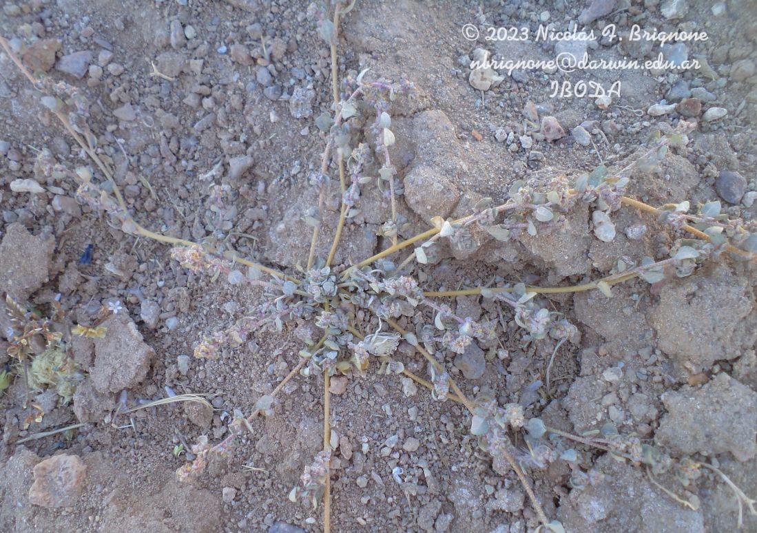Plantas herbáceas, anuales, monoicas, postradas, de tonos cenicientos, de 1-2 cm de alto y 10-50 cm de diámetro; entrenudos hasta de 10 cm de largo. Hojas alternas, pecioladas, ovadas a triangular-ovadas, de 4-20 × 2-10 mm; margen entero; base truncada; ápice agudo; anatomía Kranz. Inflorescencias en mérulos bisexuales, terminales o axilares. Bractéolas fructíferas sésiles, flabeladas, obtriangulares, de 2-4 × 2-3 mm, soldadas entre sí en la base y por los laterales hasta el margen superior; margen superior truncado, emarginado hasta 2-lobulado, a veces mucronado; cara externa lisa o con pequeñas verrugas a ambos lados de la línea media. Semillas castaño oscuras; embrión con radícula ascendente.