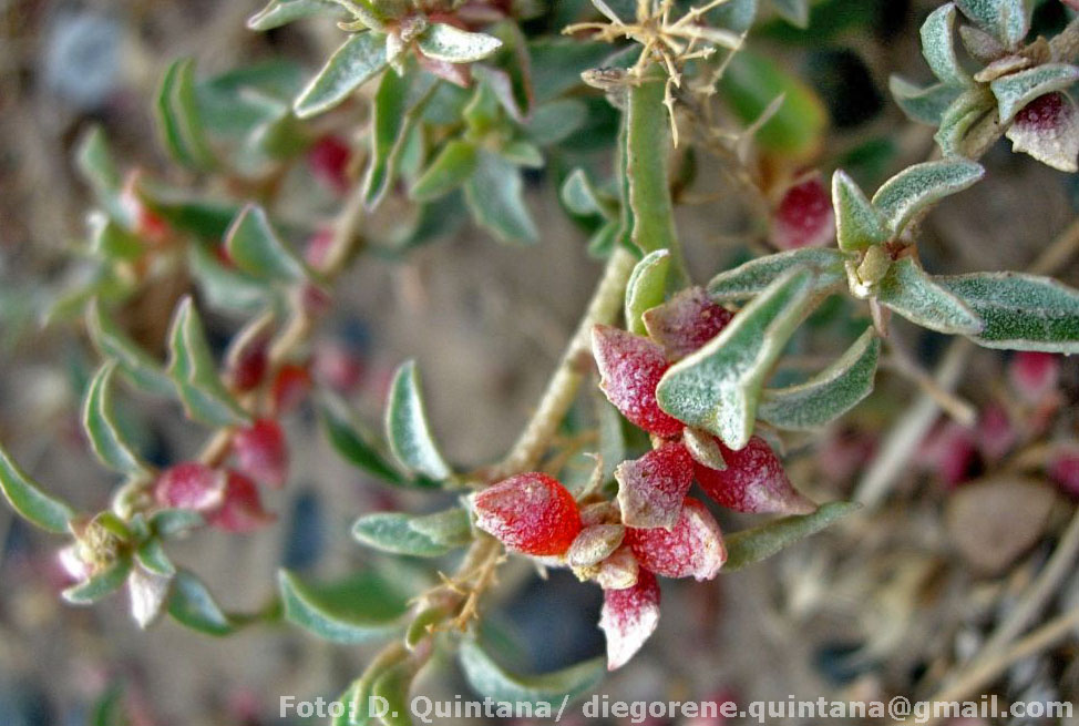 Sufrútices perennes, monoicos, de 5-35 cm de alto, con ramas ascendentes o más o menos tendidas. Hojas alternas, cortamente pecioladas, generalmente grisáceas o verdosas en la cara adaxial, oblongas u oblongo-elípticas, de 1-4(-6) × 0,5-1,5 cm; margen entero o denticulado; base atenuada; ápice agudo u obtuso, mucronado; anatomía Kranz. Inflorescencias en glomérulos en la extremidad de las ramas; flores estaminadas en glomérulos axilares y paucifloros; flores carpeladas solitarias o en glomérulos paucifloros, ubicadas más abajo. Bractéolas fructíferas gruesas, carnosas y rojizas cuando están frescas, pero comprimidas, duras y negras al secarse, rómbicas, de 3-6 × 3-5 mm, soldadas entre sí desde la base y por los márgenes hasta casi la parte media de su longitud; margen entero o denticulado; margen superior agudo, con un diente central; cara externa lisa, pero notablemente reticulado-nervada cuando están secas. Semillas castañas; embrión con radícula lateral.