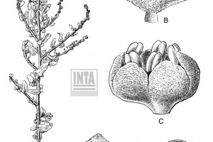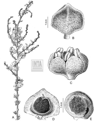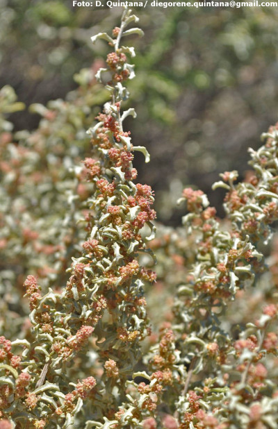 Plantas arbustivas, leñosas, dioicas, de 0,30-1 m de alto; tallo erecto, profusamente ramificado. Hojas alternas, brevemente pecioladas, planas u onduladas, obovadas, oblongas, ovales u oval-hastadas, de 6-15 × 2-7 mm; margen entero o levemente ondulado; base atenuada o truncada; ápice obtuso; anatomía Kranz. Inflorescencias en glomérulos dispuestos en espigas o amplias panojas sobre ramas terminales y laterales; flores estaminadas en glomérulos multifloros; flores carpeladas en glomérulos 3-4-floros. Bractéolas fructíferas coriáceas, anchamente romboidales u orbiculares, de 2-3 × 2-3 mm, soldadas desde la base y por los laterales hasta el tercio inferior de su longitud; margen entero; cara externa lisa. Semillas castaño oscuras; embrión con radícula ascendente.