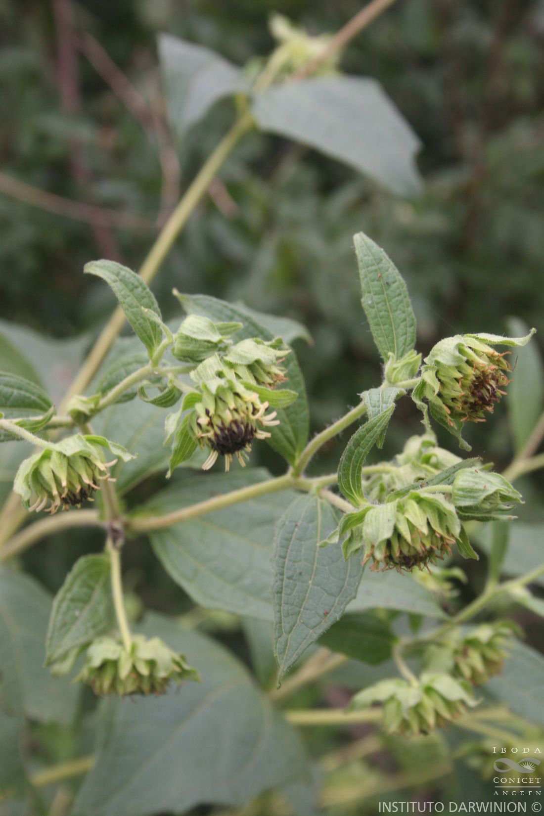 Hierbas perennes, de 1-3 m de alto; tallos glandulosopubescentes. Hojas opuestas; pecíolos alados, con aurículas connadas; láminas ovado-deltoides a levemente ovadas, de 11- 24 × 5-16 cm, ápice agudo, margen irregularmente dentado, 2-4 lobado-dentado, glanduloso-pubescentes en ambas caras. Capítulos 3-5, dispuestos en cimas racimosas; pedúnculos de 3- 9 cm de largo, densamente pubescentes. Involucro acampanado a hemisférico, de 8-16 × 12-17 mm; filarios 3-seriados, los externos ovados, de 11-16 × 4-10 mm, con ápice agudo, los internos ovados, de 5-9 × 2-4 mm, glanduloso-pubescentes, envolviendo parcialmente a los aquenios. Receptáculo con páleas sub-ovadas u oblongas, de 4-7 mm de largo, con ápice agudo. Flores del margen ca. 20, dispuestas en 2 series, con corolas amarillas, lígula ovada a oblonga, de 4-6 mm de largo, con tubo de 2 mm de largo; las del centro ca. 40, con corolas amarillas de 7 mm de largo, tubo de 1,8-2 mm de largo. Aquenios obovoides, de 3-5 × 2,5-3,5 mm, glabros. Papus ausente.