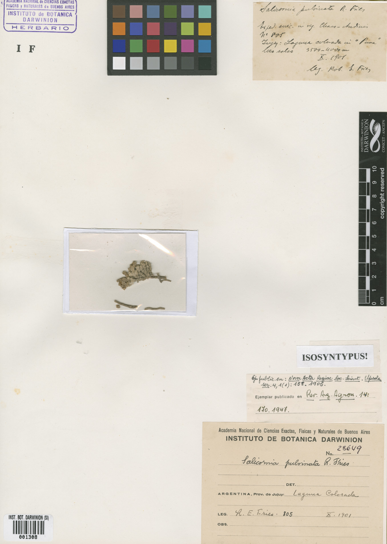 Material Tipo: Argentina. Jujuy. Dpto. Yavi. Laguna Colorada in "Puna", loco salso, 3500-4000 m, 20 Oct 1901, R. E. Fries 805 (lectotipo, SI 28649 [SI 001308], designado por Alonso & Crespo, Ann. Bot. Fennici 45: 252. 2008; isolectotipos, CORD 00002400, S-R-5540).