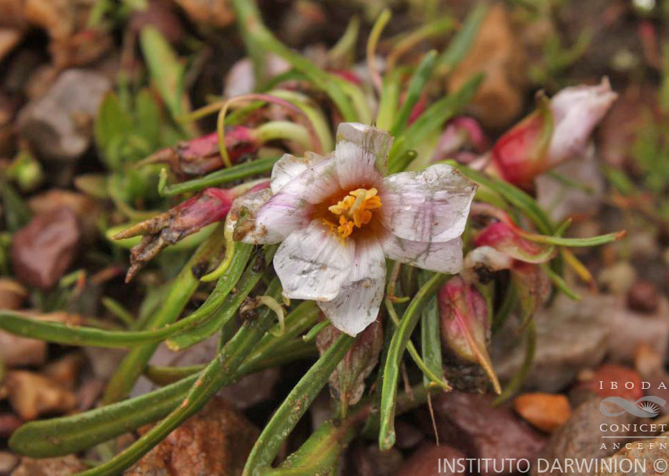 Hierba perenne, glabras con el rizoma grueso, carnoso. Hojas en roseta, lineales, agudas, hasta de 8 cm de largo. Inflorescencias 1-flora, pedunculadas de menos de la mitad del largo de las hojas, articulados, con dos largas brácteas lineales, opuestas, en su tercio superior; flores blancas; sépalos ovado-deltoideos, agudos, enteros; estambres 25-30.