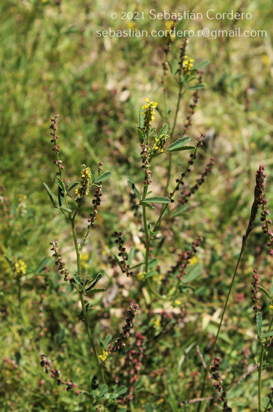 Planta hasta 1 m alt., glabra o pubescente. Tallos erectos. Hojas verde claras, a veces glaucas; estípulas de 2,5-7 mm, triangulares a subuladas, enteras; pecíolo de 5-15 mm; folíolos de 10-20 x 4-15 mm, obovados u oblongos, a veces subrómbicos, ápice trunca¬do, cuneados. Racimos de 4-10 cm, laxos, pedúnculo de 1-4 cm. Flores de 5-7 mm, péndulas; pedicelo de 1,5-2 mm; bráctea de 1-1,5 mm. Cáliz de 2,2-3,5 mm, dientes del cáliz triangulares a subulados. Corola amarilla; vexilo de 4,5-6 x 2,5-3,5 mm, elíptico a obovado, emarginado; alas oblongas, mayores que la quilla; limbo de la quilla de 2,6-3,5 x 1-1,5 mm, uña de 2-2,2 mm. Estambres seudomonadelfos. Ovario de 1,6-2 x 0,4-0,6 mm, elipsoide, glabro, (4-)5-8-ovulado, sobre un estípite de 0,8-1,2 mm; estilo de 2,2-3 mm, suberecto. Fruto de 3-5 x 2-2,8 mm, globoso, mucronado, estipitado, estípite in¬cluido en el cáliz, l-(2-)seminado, indehiscente; pericarpo con nervios trasversales, cas¬taño, glabro; semillas de 1,7-2,5 x 1,3-1,6 mm, castaño-verdosas.
