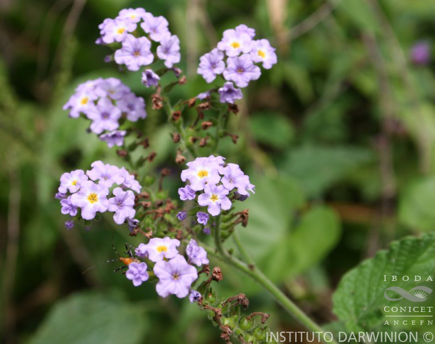 Hierba perenne hasta de 100 cm de alto; tallos erectos, híspidos con pelos glandulares. Hojas alternas, o subopuestas; pecíolos de (5-)15-30 mm de largo; láminas ovadas, de (3-)4-6,5(-10) × 2,5-4,5(-7) cm, híspido-glandulares, cartáceas, ápice agudo, base obtusa o cordada, el margen liso u ondulado. Inflorescencias en cincinos hasta de 15 cm de largo, pedunculados, 2-4 furcados, multifloros, con 20-30 flores. Flores con cáliz de 2,5-3 mm de largo, lacinias linear-triangulares, híspido-glandulares; corola infundibuliforme, blanca, lila o violácea, el centro amarillo, tubo de 6-11 mm de largo, exterior e interiormente estrigosa, limbo de 6-8 mm de diámetro, lóbulos anchamente triangulares o redondeados; anteras elipsoidales, de 1-1,5 mm de largo; ovario ca. 1 mm de largo, estigma pubescente con reborde basal suave. Fruto subgloboso, de 2,5-3 × 2,5-3 mm, glabro, dividido a la madurez en 2 mericarpos 2-seminados.