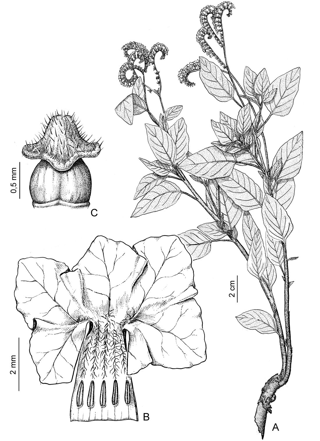 Material Tipo: Paraguay. Central Paraguay. Asunción, 1 Abr 1889, T. Morong 634 (lectotipo, NY 00335394, NY 00335396, designado en primera instancia por I. M. Johnston, Contr. Gray Herb. 81: 24. 1928; isolectotipos, BM 000089657, E 00781635, E 00781636, GH 00097641, MSB 002930, NDG 42357, US 00512996).