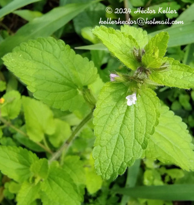 Hierbas hasta de 70 cm de alto; tallos pilosos, decumbentes. Hojas subpecioladas o pecioladas hacia la base; pecíolos de 0,1- 0,2 cm de largo; láminas ovadas, de 1-2(-3) × 0,5-2 cm, base subcordada, ápice redondeado, margen crenado. Flores agrupadas en verticilastros 4-6 floros, reunidos hacia el ápice de las ramas; bractéolas ca. 1 mm de largo. Cáliz de 6-7 mm de largo, piloso, a veces con pelos glandulares, dientes subiguales, de 1,5-2 mm de largo, agudos, triangulares, de ápice rígido. Corola de color rosa o lila, de 5-8 mm de largo, tubo incluso, de 4-7 mm de largo, pubescente hacia los labios, cara interna con anillo de pelos en la mitad inferior, labio superior entero o crenulado, el inferior 3-lobado. Estambres con filamentos pilosos, los inferiores algo mayores, tecas divergentes. Estilo con ramas desiguales. Clusas de 1,5-2 mm de largo, trígonas, pardas a castaño-oscuras, granulosas, con tubérculos irregulares.