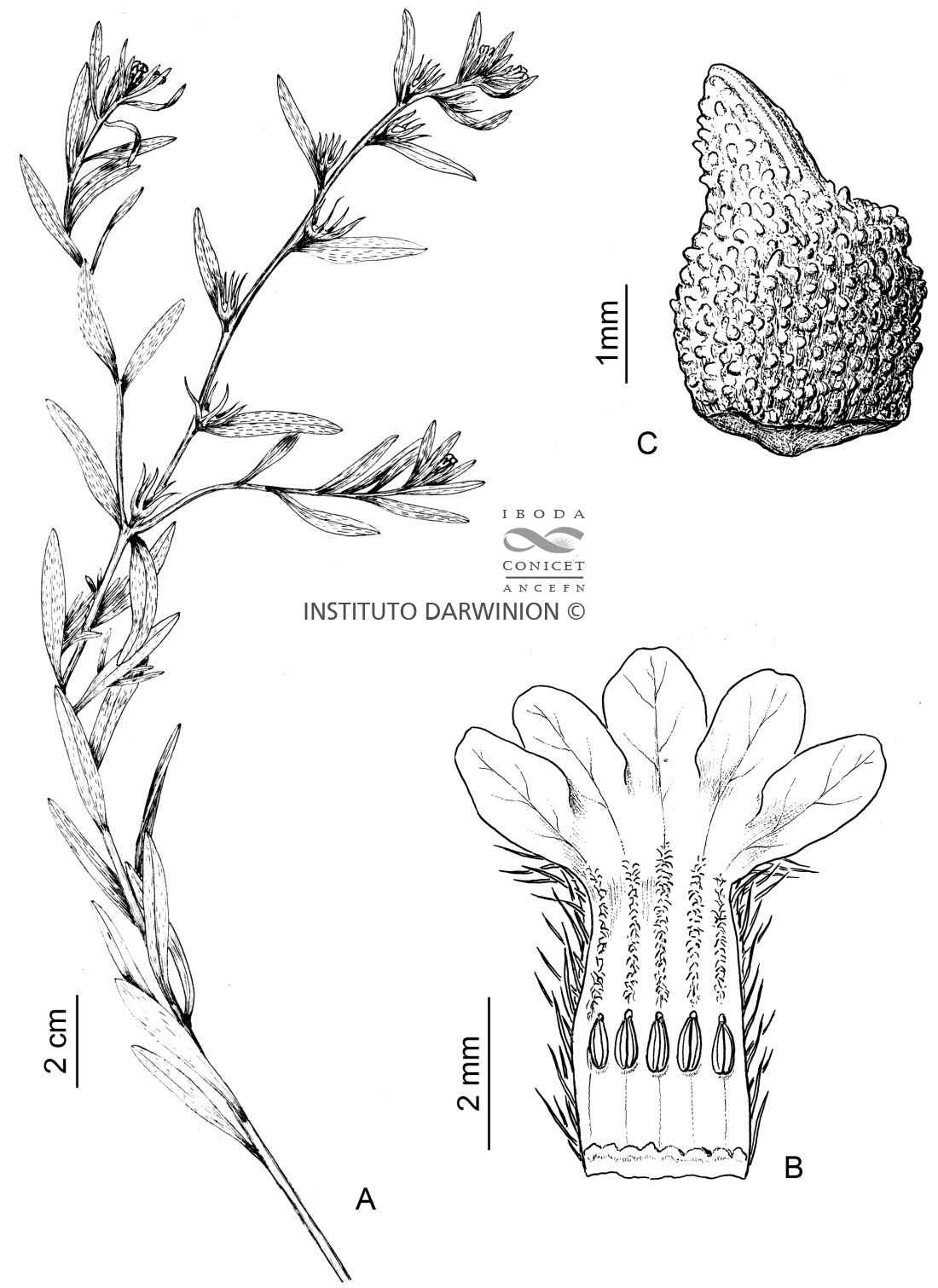 Material Tipo: Lithospermum arvense L., Sp. Pl. 1: 132. 1753. TIPO: "Habitat in Europae agris & arvis" (lectotipo, LINN-181.4, designado por Kazmi, J. Arnold Arbor. 52: 356. 1971).