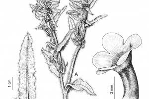 Plantas hasta de 70 cm de alto. Hojas con lámina de 8-20 × 0,5-2 cm. Flores con cáliz de 3,5-6 mm de largo; corola con tubo de 3,5-5,5 mm de largo, limbo de 4-7 mm de diámetro; estambres con anteras de 0,6-1 mm de largo. Clusas de 3-4 mm de largo.