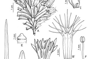 Hierbas en cojín. Hojas a menudo en roseta con pecíolos transformados en una vaina amplexicaule, ovada u obovada, escariosa, glabra o pubescente en el margen, con tricomas lanosos, blancos y largos; lámina 3-partida, cada segmento hasta 3 veces dividido en lacinias muy estrechas, agudas, con una glándula en el ápice. Flores con pedúnculos hasta de 15 mm de largo. Flores estaminadas con 5-6 sépalos ovados, de 5-6 × 1,3-1,7 mm, angostos, desiguales, asimétricos, de ápice obtuso o subagudo, gruesos; pétalos 7-8, lineares, ca. 14 × 0,7 mm, angostos, de ápice subagudo, glabros; nectario como una hendidura; sin escamas; estambres 40-45, filamentos de 4-4,5 mm de largo, anteras de contorno oblongo; receptáculo subcónico, ca. 1 mm de largo, glabro. Flores pistiladas semejantes a las estaminadas; carpelos 30-50, semiovoides, comprimidos lateralmente, con 2 prominencias laterales y nervio dorsal notable, atenuados en estilo curvo ca. 1-2 mm de largo, papiloso. Frutos aquenios de la misma forma que los carpelos, hasta de 5 mm de largo.