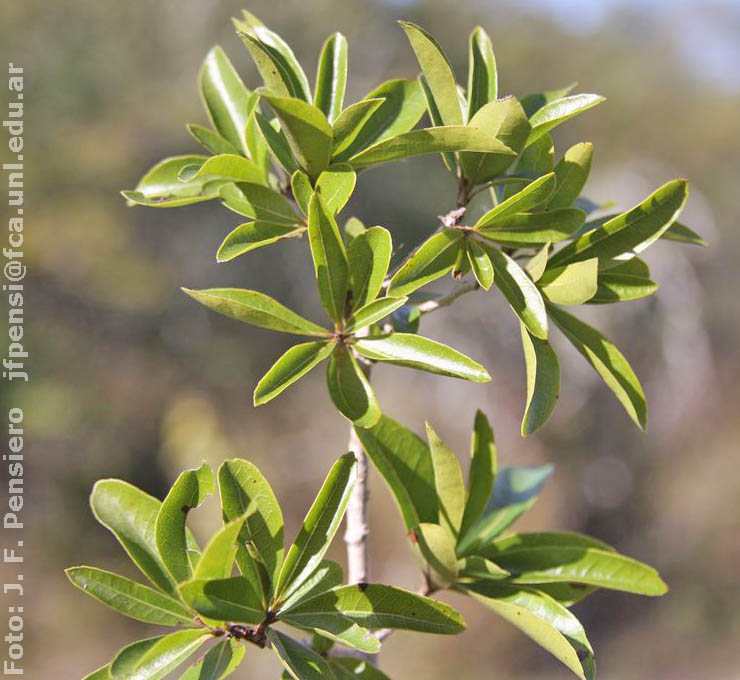 Observaciones: Nombres vulgares y usos. “Guayaibí”, “guayaibí blanco”, “guayaibí-morotí”, “guayaibí-rá”, “lanza”, “lanza blanca”. La madera es muy apreciada en carpintería y mueblería, con múltiples usos como ser la elaboración de pisos de parqué, marcos, instrumentos musicales, piezas de piano, cabos de herramientas y tacos para calzado (Pérez-Moreau, 1979; Pérez-Moreau & Cabrera, 1983). Cantero et al. (2019) reportan además su uso como tintórea y textil.