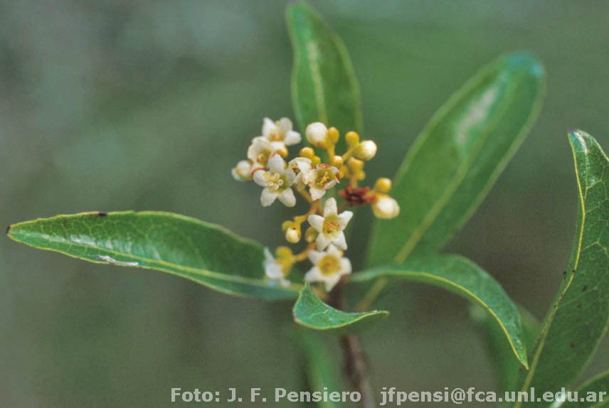 Observaciones: Nombres vulgares y usos. “Guayaibí”, “guayaibí blanco”, “guayaibí-morotí”, “guayaibí-rá”, “lanza”, “lanza blanca”. La madera es muy apreciada en carpintería y mueblería, con múltiples usos como ser la elaboración de pisos de parqué, marcos, instrumentos musicales, piezas de piano, cabos de herramientas y tacos para calzado (Pérez-Moreau, 1979; Pérez-Moreau & Cabrera, 1983). Cantero et al. (2019) reportan además su uso como tintórea y textil.