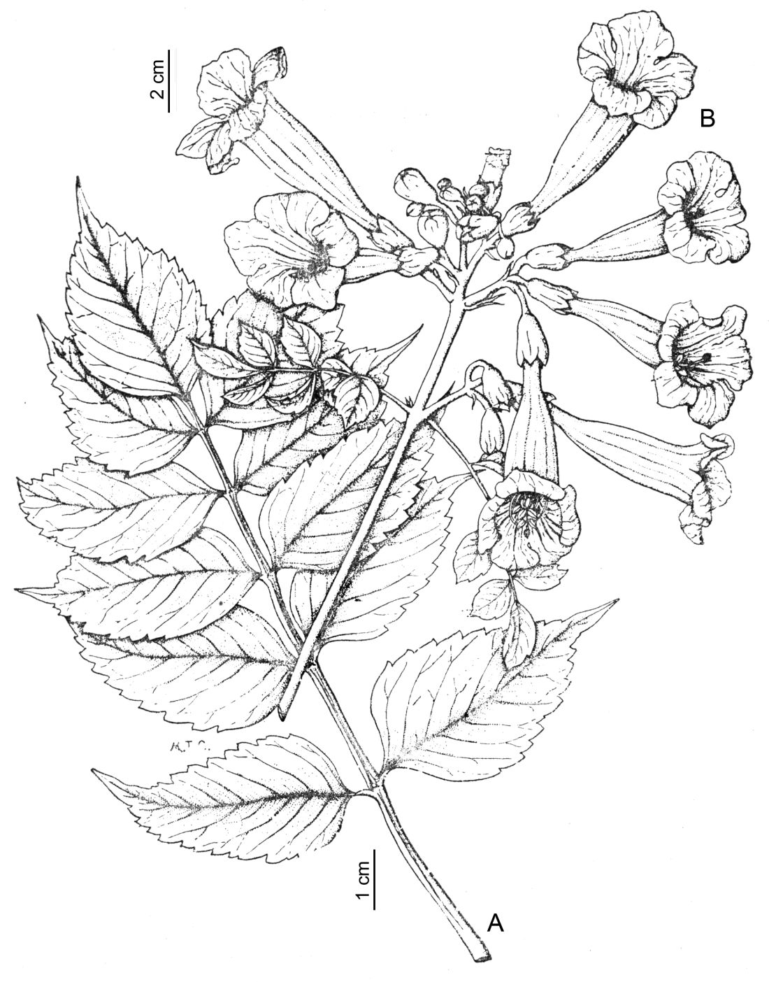 Tomado de Fabris, H. A. 1959. Bignoniaceas. Las Plantas cultivadas en la República Argentina 10: 11, fig. 3.