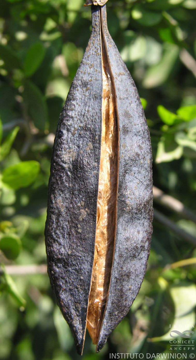 Liana de 3-10 m de alto, tallo hasta de 20 cm de diám., corteza agrietada, rugosa; ramas con lenticelas elípticas, de 0,5-0,6 mm de largo, nudos con campos glandulares, línea interpeciolar a veces presente; profilos de las yemas axilares angustiovados, de 2 mm de largo. Hojas bifolioladas o con zarcillo terminal trigarfiado, pecíolo de 1,2-2,4 cm de largo, estriado, glabro; peciólulos de 2-3 mm de largo, estriados, glabros; folíolos coriáceos, ovados o angustiovados a elípticos, de 3,1-8 × 1,3-4,2 cm, glabros, borde entero, ápice mucronado, haz lustrosa, venación menor visible en ambas caras, envés con escamas dispersas, nectarios escasos o ausentes. Inflorescencias en cimas axilares o terminales dicotómicas 2-8-floras, a veces flores solitarias; brácteas moradas o vinosas, de 1,7-2,1 × 1 cm, elípticas, mucronadas, caducas. Flores perfumadas, pedicelos de 4-32 mm de largo, bractéolas coloreadas, sésiles, ovadas o latielípticas, mucronadas, de 5-20 × 4-16 mm; cáliz purpúreo-vinoso, inflado, espatiforme, persistente, de 2,6-2,7 × 1,3-1,9 cm, glabro, cortamente apiculado; corola tubulosa, anaranjada a rojo- oscura, de 4,5-7 cm de largo, glabra, lóbulos amarillos, anaranjados o rojizos, de 1,5 cm de diám.; estambres con anteras exertas, conectivo obtuso, tecas paralelas o algo divergentes, de 4,3-5,4 mm de largo; ovario oblongo, de 3-5 mm de largo, disco pulvinado. Cápsulas loculicidas, fusiformes, de 6-13 × 1,5-2,4 cm, coriáceas, negruzcas, ligeramente rugosas, tabique perpendicular a las valvas. Semillas de contorno elíptico, de 1-1,5 × 2-2,8 cm, delgadas, bialadas, cuerpo opaco cordiforme, alas hialinas.