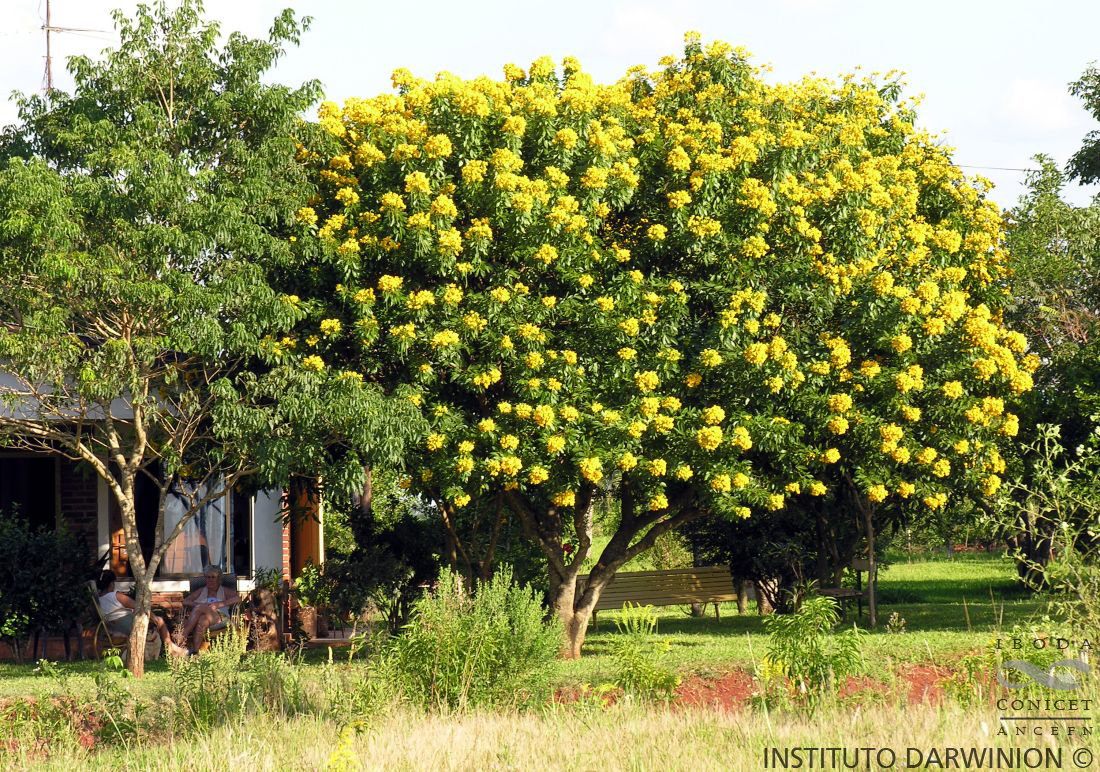 Arbustos o árboles, 2,5-10 m alt., 80 cm diám.; ramas cilíndricas, subangulosas, con pubescencia corta y amarillenta. Hojas paripinadas, sin glándulas nectaríferas, 8–15 yugas; pecíolo pubescente, éste y el raquis subcilíndricos, caniculados, ápice del raquis terminado en mucrón setáceo; estípulas lineal-subuladas, 10-20 mm long, prontamente caducas; folíolos ovado-lanceolados, acuminados, 3 – 9 cm long x 1,5 – 3,3 (3,8) cm lat., discolores, epifilo pubérulo e hipofilo pubescente principalmente en nervaduras principales y secundarias. Racimos 5-9- floros, 8 – 15 cm long, agrupados en número de 10-15 en vistosas panículas piramidales en el extremo de las ramas. Flores 3,5 cm diám. en antesis, pedicelo recto, pubescente, pétalos obovales, unguiculados, amarillo intenso, ápice obtuso, androceo glabro, 7 estambres fértiles inferiores, filamentos cilíndricos y anteras basifijas oblongo-tetrágonas, 3 estaminodios superiores ; ovario glabro, cilíndrico, encorvado, 20–22 mm long. x 9–15 mm lat., estigma circular, oblicuo, con borde ciliado, numerosos óvulos. Legumbre recta, hasta 30 cm long. x 1,5 – 2 cm lat. x 1 – 1,5 cm espesor, subcilíndrica, levemente comprimida, subtorulosa, negra al madurar, sutura ventral marcada, caniculada, indehiscente o apenas dehiscente tardíamente, con tabiques transversales internos cuyas cavidades contienen una sola semilla en posición transversal.
