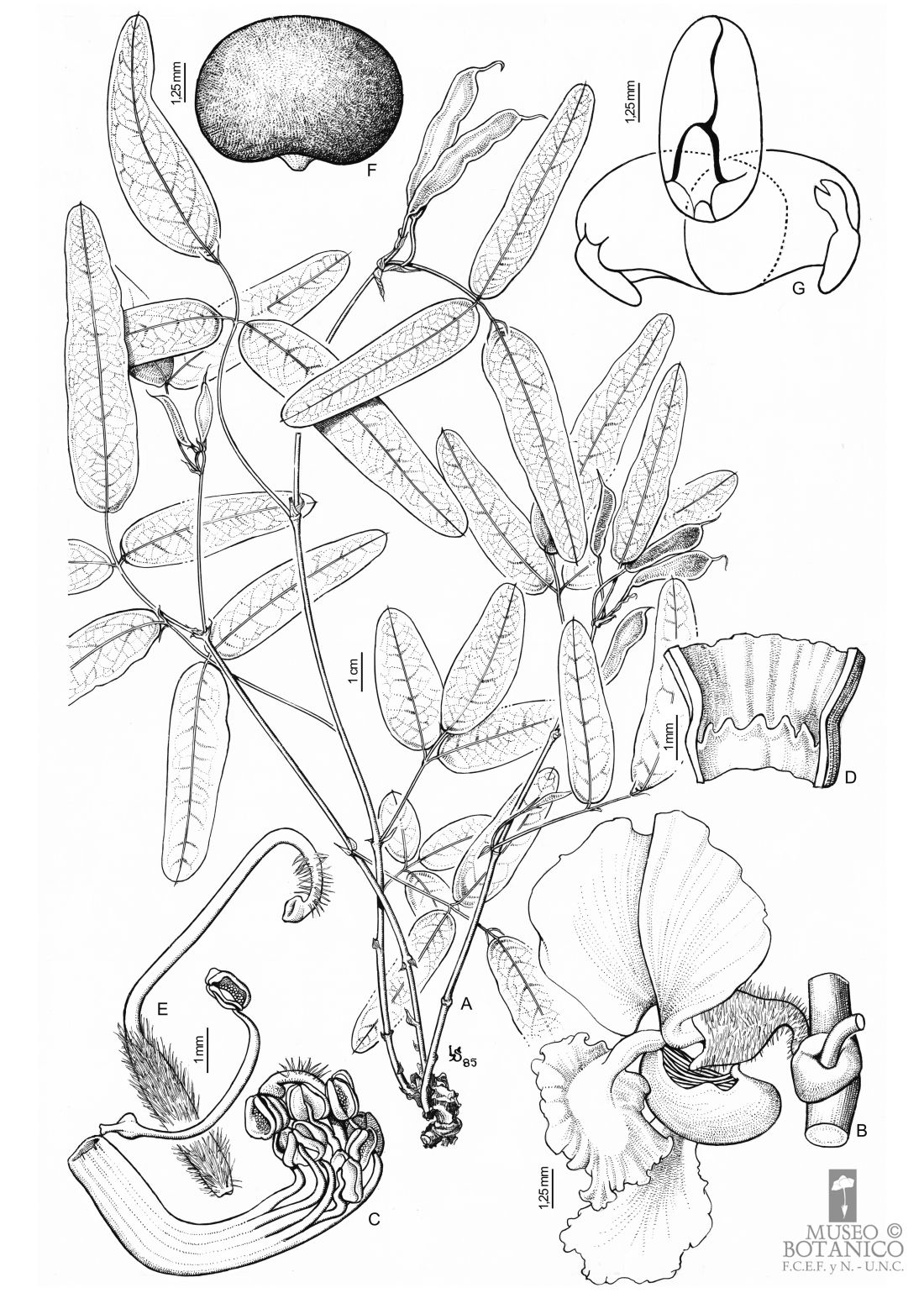 Material Tipo: SINTIPOS. "Argentina. Prov. Córdoba: Ascochinga, M. L. Giardelli de Bracco 967, 968, y E. G. Nicora 1774 y 1775, 30-1-1938; SI. « Flor blanca o lila, abundante en el monte ». — Del mismo lugar, Giardelli 1116 y 1117, 29-III- y 7-IV-1939; SI. Con frutos maduros. Hab. barrancas del río Carapel, en el monte. — Valle de los Reartes, Alb. Castellanos 11-1922; BA. s. n., dupl. in herb. Burkart 9146. — Sierra Chica, Estancia La Reducción (cerca de Villa Allende), Burkart 7367, 27-XII-1935; SI."