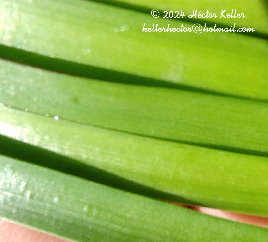 Plantas aprox. de 15 cm alt. Bulbos ovoides alrededor de 2 cm de diám., provisto de un cuello de 2-3 cm de largo. Hojas lineares, algo carnosas, de 15-18 cm × 1,5-2 mm, de color verde brillante. Escapo de 10 cm × 2,4 mm, algo comprimido, de color verde-ocráceo. Inflorescencia uniflora, espata univalva, tubulosa, de aprox. 23 mm de largo, bífida en el ápice, rojiza, membranácea. Flor pedicelada, de color amarillo intenso, infundibuliforme, de 4,5 cm diám. Pedicelo de 16 mm de largo. Tépalos oblanceolados, soldados en la base 3-4 mm, los exteriores de 33 × 7,7 mm, algo verdosos en el envés, hacia la base y en el ápice, agudos, los interiores de 29,5 × 7,2 mm. Filamentos amarillos, los episépalos de 9-9,5 cm de largo, los epipétalos de 9,5-10,8 mm de largo. Anteras amarillas, versátiles, reniformes, de 3,4 mm de largo. Ovario de 3 × 2,5 mm. Estilo erguido, amarillo, de 14-15 mm de largo. Estigma capitado-trilobado.