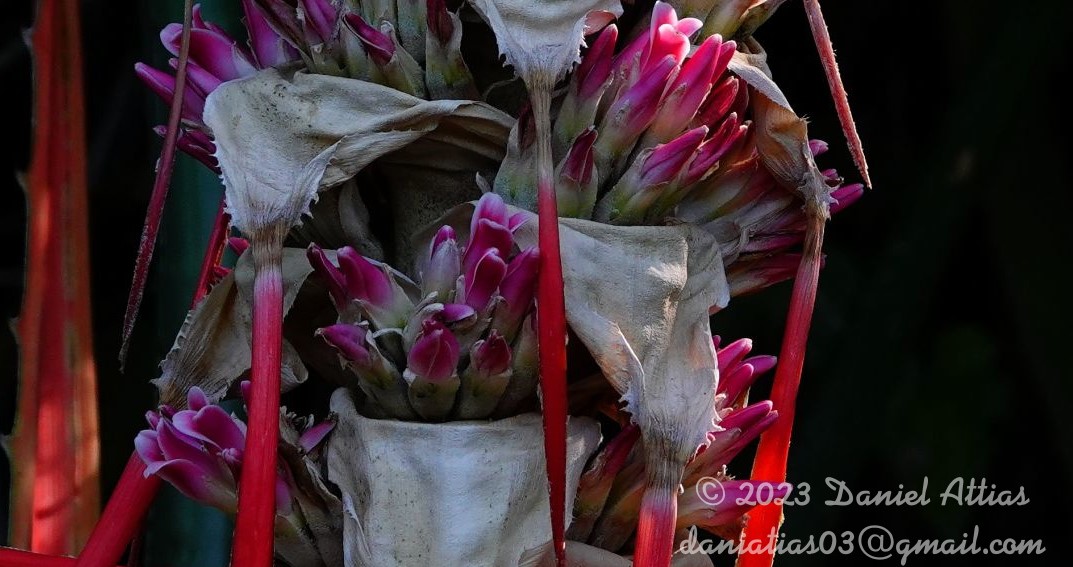Plantas caulescentes, hasta de 1 m de alto, con rizomas. Hojas numerosas, no contraídas entre vaina y lámina; vainas de 7-9 x 3-3,5 cm, oblongas, de borde espinuloso; láminas de 20-50 x 1-2 cm, lineares, ápice atenuado, borde con espinas, éstas de 0,5-0,6 cm, antrorsas, curvadas, glabras. Escapo floral erecto, grueso, brácteas basales, similares a las hojas, vaina de 6 x 3 cm, lámina de 20-25 x 1 cm, plegada, borde similar a hojas caulinares. Inflorescencia paniculada, hasta de 25 cm x 9-10 cm, cilíndricas, ejes cubiertos con pelos blancos u oscuros; brácteas basales de cada eje, de 4 x 3 cm, anchamente ovadas, ápice agudo, borde espinuloso, ramas con hasta 10 flores, muy densas. Brácteas florales, ca. 3 x 0,8 cm, lineares o angostamente elípticas, ápice redondeado, borde entero o ligeramente serrulado. Flores subsésiles, ca. 4,5 cm de largo. Sépalos de 2 x 0,8 cm, elípticos, obtusos, carinados, cuculados, coriáceos, glabros o tomentosos en la base. Pétalos de 2,5 cm x 1 cm, lineares, obtuso, glabros, connados, en la base, ca. 0,5-0,8 cm, entre sí y con la base de los filamentos. Estambres inclusos, parte libre de los filamentos de 1 cm de largo; anteras de 0,8 cm de largo, sagitadas, angostamente elípticas. Ovario de 2 x 0,7 cm, claviforme. Infrutescencia ca. 30 cm de largo, fruto ca. 3 x 2 cm, ovoide, carnoso. Semillas numerosas, de 0,5 mm de ancho, menudamente punteadas.