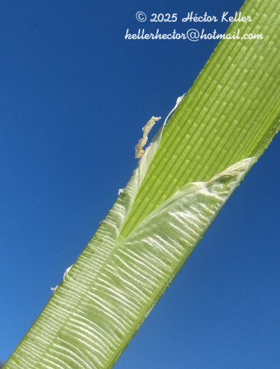 Rizoma cespitífero. Tallos triangulares, lisos, de ángulos obtusos, de 15-60 cm de alto. Hojas del largo del tallo, de 4-8 mm de ancho, ligeramente escabrosas en los bordes. Inflorescencia en antela más o menos desarrollada, a veces contraída; radios 7-9 en las formas robustas, en que pueden llegar a 10 cm; radios secundarios dispuestos en corimbo; umbelas secundarias contraídas a veces en glomérulos; espiguillas linear-lanceoladas de 11-15 x 2-2,5 mm con 18-30 flores. Estambre único. Estigmas 3. Aquenio obovoide, trígono, atenuado en la base en estípite corto de color purpúreo, así como el mucrón, de 1,1-1,4 mm.