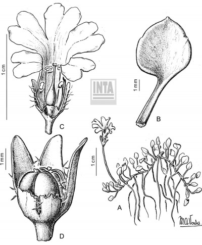 Observaciones: Especie morfológicamente afín a Ourisia fuegiana, de la cual se distingue por poseer brácteas florales sésiles y corolas de menor tamaño. Citada para la Argentina bajo Ourisia uniflora Phil. (Descole & Borsini, 1956).