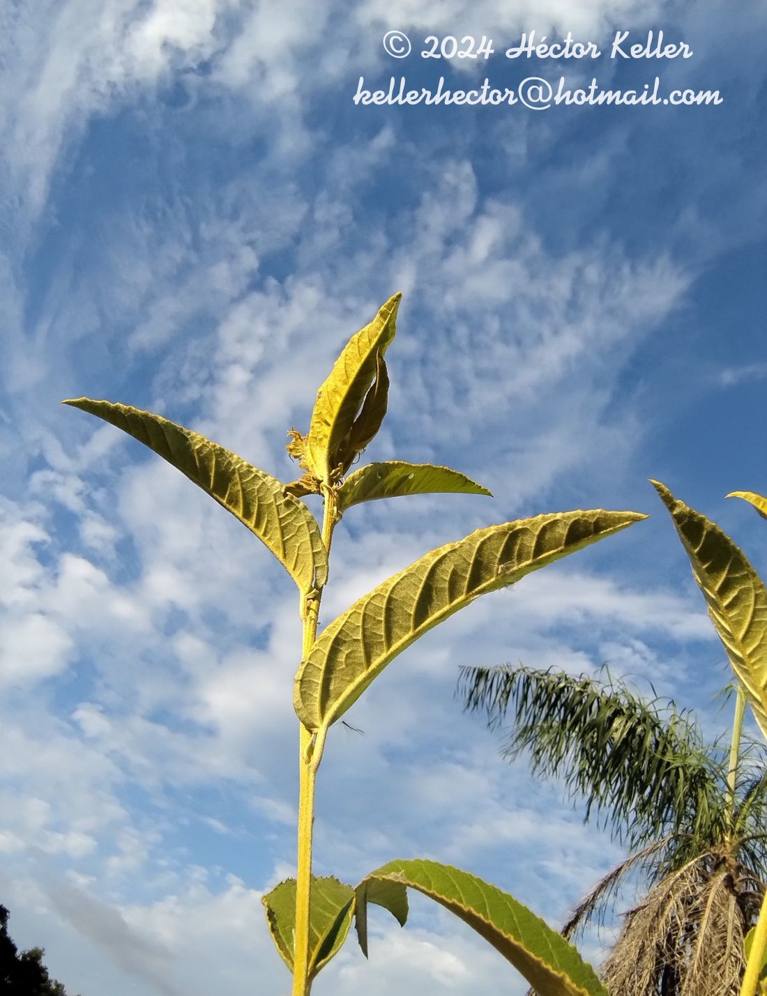 Arbustos o subarbustos monoicos, de 30-80 cm de alto, con xilopodio, ramificados desde la base, con ramas erectas a decumbentes, indumento de tricomas estrellado-porrectos estipitados, amarillentos o castaño-ocráceos. Hojas alternas; pecíolos de 0,5-3 cm de largo; estípulas filiformes, de 8-14 mm de largo; láminas lanceoladas a elíptico-ovadas, de 4-9 × 1,5-4(-5) cm, discoloras, triplinervias en la base, luego peninervadas con 3-8 pares de nervios secundarios, ápice acuminado, base cuneada a algo redondeada, márgenes denticulados a dentado-aserrados, cara adaxial tomentulosa, más oscura al secarse que en la cara abaxial que es densamente blanca tomentosa. Inflorescencias muy compactas, cónico capituliformes o piramidales, 2-sexuales, de 2-3 × 1,5-2,5 cm; brácteas estaminadas elípticas con dientes cortos en el borde; brácteas pistiladas oblongas a lineares, de 8-13 mm de largo, ápice caudado, margen pinnatisecto compuesto de dos o más extensiones que aumentan su tamaño hacia la base, ambas con tricomas estrellados estipitado-porrectos, amarillento-dorados externamente y tricomas estrellados sésiles internamente. Flores estaminadas con pedicelo corto o subsésiles; sépalos 5, triangulares, ca. 4 × 2-3 mm, con tricomas estrellados, cortamente estipitados, densos y amarillentos externamente; pétalos 5, ligulados, de 3-4 × 2 mm, vilosos externamente; estambres 11, filamentos de 8-11 mm de largo. Flores pistiladas corto-pediceladas o subsésiles, asimétricas; sépalos 3, del lado abaxial del receptáculo, profundamente y fuertemente laciniados, de 8-10 × 7-9 mm, cubiertos externamente por tricomas estrellado-estipitados, amarillento-dorados; pétalos nulos; lóbulos nectaríferos 3, opositisépalos; ovario globoso, ca. 4 mm de diametro, hispídulo, estilos 3, divergentes, hasta de 11 mm de largo, divididos en la mitad superior varias veces, dando 18-24 terminaciones estigmáticas, con tricomas estrellados o simples excepto en las puntas, filiformes y amarillentos cuando vivas. Fruto una cápsula ovoide, ca. 6 mm de diámetro. Semillas ca. 4 × 3 mm, castañas, lisas, con carúncula subapical de 1,5-2 mm de ancho.