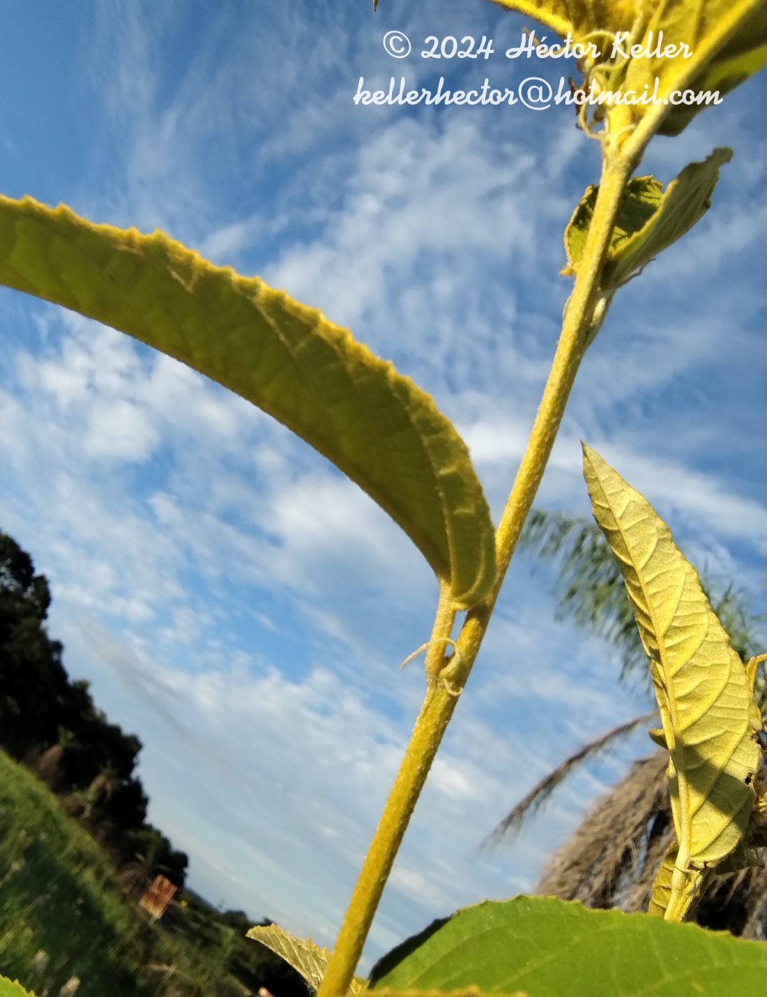 Arbustos o subarbustos monoicos, de 30-80 cm de alto, con xilopodio, ramificados desde la base, con ramas erectas a decumbentes, indumento de tricomas estrellado-porrectos estipitados, amarillentos o castaño-ocráceos. Hojas alternas; pecíolos de 0,5-3 cm de largo; estípulas filiformes, de 8-14 mm de largo; láminas lanceoladas a elíptico-ovadas, de 4-9 × 1,5-4(-5) cm, discoloras, triplinervias en la base, luego peninervadas con 3-8 pares de nervios secundarios, ápice acuminado, base cuneada a algo redondeada, márgenes denticulados a dentado-aserrados, cara adaxial tomentulosa, más oscura al secarse que en la cara abaxial que es densamente blanca tomentosa. Inflorescencias muy compactas, cónico capituliformes o piramidales, 2-sexuales, de 2-3 × 1,5-2,5 cm; brácteas estaminadas elípticas con dientes cortos en el borde; brácteas pistiladas oblongas a lineares, de 8-13 mm de largo, ápice caudado, margen pinnatisecto compuesto de dos o más extensiones que aumentan su tamaño hacia la base, ambas con tricomas estrellados estipitado-porrectos, amarillento-dorados externamente y tricomas estrellados sésiles internamente. Flores estaminadas con pedicelo corto o subsésiles; sépalos 5, triangulares, ca. 4 × 2-3 mm, con tricomas estrellados, cortamente estipitados, densos y amarillentos externamente; pétalos 5, ligulados, de 3-4 × 2 mm, vilosos externamente; estambres 11, filamentos de 8-11 mm de largo. Flores pistiladas corto-pediceladas o subsésiles, asimétricas; sépalos 3, del lado abaxial del receptáculo, profundamente y fuertemente laciniados, de 8-10 × 7-9 mm, cubiertos externamente por tricomas estrellado-estipitados, amarillento-dorados; pétalos nulos; lóbulos nectaríferos 3, opositisépalos; ovario globoso, ca. 4 mm de diametro, hispídulo, estilos 3, divergentes, hasta de 11 mm de largo, divididos en la mitad superior varias veces, dando 18-24 terminaciones estigmáticas, con tricomas estrellados o simples excepto en las puntas, filiformes y amarillentos cuando vivas. Fruto una cápsula ovoide, ca. 6 mm de diámetro. Semillas ca. 4 × 3 mm, castañas, lisas, con carúncula subapical de 1,5-2 mm de ancho.