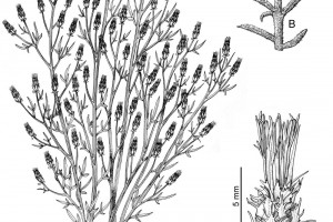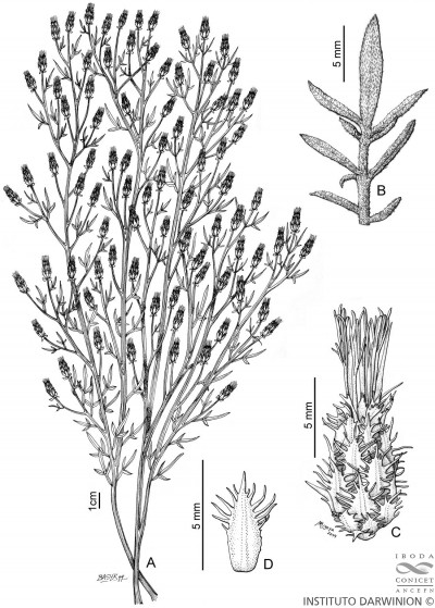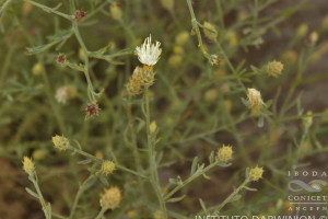 Hierbas anuales o bienales, hasta de 50(-60) cm de alto, muy ramificadas, con tallos estriados, divaricados, muy laxamente tomentulosos o glabrescentes. Hojas sésiles o inscospicuamente pecioladas, las basales arrosetadas, caducas, con láminas de contorno obovado o elíptico, pinnatisectas o bipinnatisectas, ca. 3-6 × 2 cm, con hasta 8-9 pares de segmentos elípticos, ovados u obovados, ca. 1-1,5 cm × 2-5 mm, las superiores con láminas de contorno obovado y pinnatisectas, de 4-6,5 × 3 cm, generalmente con 3-4 pares de segmentos angostamente elípticos o lineares, ca. 1,5 cm × 2 mm, base decurrente, ápice agudo, y margen entero, o lineares, ca. 1-1,5 cm × 1 mm, laxamente albo-tomentosas en ambas superficies. Capítulos heterógamos y subdiscoides, solitarios en el extremo de las ramas, sésiles o subsésiles. Involucro ovoide o cilíndrico, de 9-10 × 4-5 mm, 7-8-seriado; filarios coriáceos, los externos ovados, ca. 3 × 1 mm, margen pectinado, con una espina terminal apenas diferenciada, los medios ovados o angostamente ovados, de 5-8 × 1-2 mm, margen de la mitad superior pectinado, ápice subulado, con una espina terminal diferenciada de 1-2 mm de largo, y los internos oblongos, de 9-10 × 1 mm, ápice obtuso, a veces diminutamente aserrado, margen membranáceo, no espinoso. Receptáculo plano, con numerosas cerdas hasta de 5 mm de largo. Flores 20-30, dimorfas, las del margen neutras, con corolas radiantes, de 1,3-1,5 cm de largo, blancas, cremosas o rosadas y lóbulos ca. 5 mm de largo, las del centro perfectas, con corolas ca. 1,1 cm de largo, blancas, cremosas o rosadas y lóbulos de 4-5 mm de largo. Aquenios obovoides u oblongoides, ca. 3 × 1 mm, muy ligeramente estriados, con un reborde apical, pardos, glabros. Papus ausente.