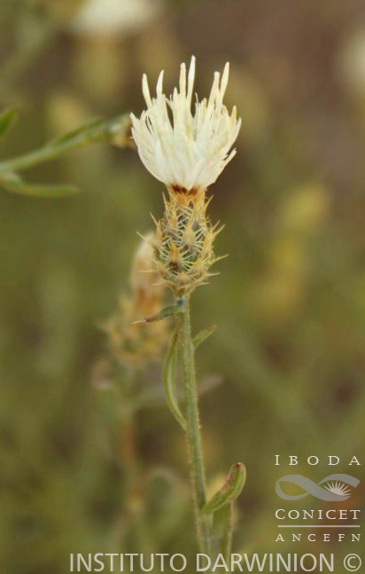 Hierbas anuales o bienales, hasta de 50(-60) cm de alto, muy ramificadas, con tallos estriados, divaricados, muy laxamente tomentulosos o glabrescentes. Hojas sésiles o inscospicuamente pecioladas, las basales arrosetadas, caducas, con láminas de contorno obovado o elíptico, pinnatisectas o bipinnatisectas, ca. 3-6 × 2 cm, con hasta 8-9 pares de segmentos elípticos, ovados u obovados, ca. 1-1,5 cm × 2-5 mm, las superiores con láminas de contorno obovado y pinnatisectas, de 4-6,5 × 3 cm, generalmente con 3-4 pares de segmentos angostamente elípticos o lineares, ca. 1,5 cm × 2 mm, base decurrente, ápice agudo, y margen entero, o lineares, ca. 1-1,5 cm × 1 mm, laxamente albo-tomentosas en ambas superficies. Capítulos heterógamos y subdiscoides, solitarios en el extremo de las ramas, sésiles o subsésiles. Involucro ovoide o cilíndrico, de 9-10 × 4-5 mm, 7-8-seriado; filarios coriáceos, los externos ovados, ca. 3 × 1 mm, margen pectinado, con una espina terminal apenas diferenciada, los medios ovados o angostamente ovados, de 5-8 × 1-2 mm, margen de la mitad superior pectinado, ápice subulado, con una espina terminal diferenciada de 1-2 mm de largo, y los internos oblongos, de 9-10 × 1 mm, ápice obtuso, a veces diminutamente aserrado, margen membranáceo, no espinoso. Receptáculo plano, con numerosas cerdas hasta de 5 mm de largo. Flores 20-30, dimorfas, las del margen neutras, con corolas radiantes, de 1,3-1,5 cm de largo, blancas, cremosas o rosadas y lóbulos ca. 5 mm de largo, las del centro perfectas, con corolas ca. 1,1 cm de largo, blancas, cremosas o rosadas y lóbulos de 4-5 mm de largo. Aquenios obovoides u oblongoides, ca. 3 × 1 mm, muy ligeramente estriados, con un reborde apical, pardos, glabros. Papus ausente.