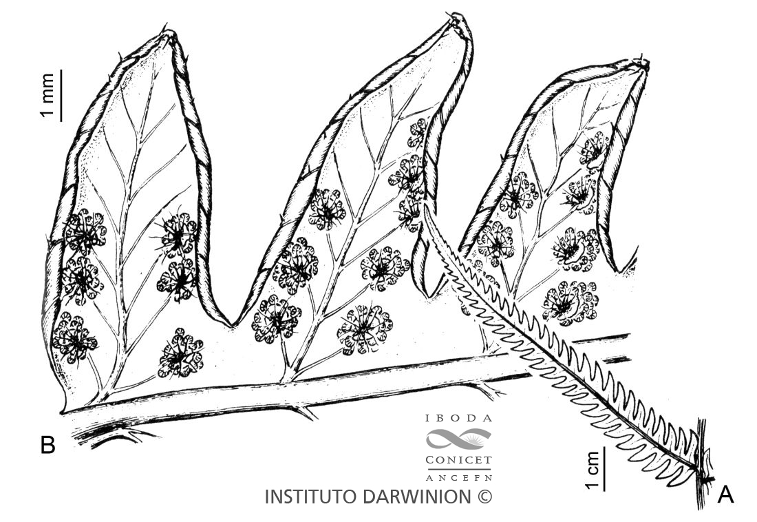 A. Pinna. B. Segmentos fértiles, cara abaxial