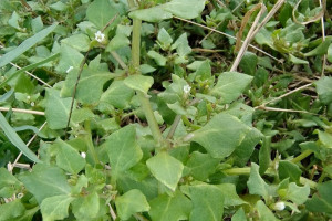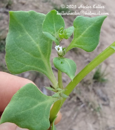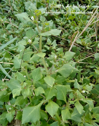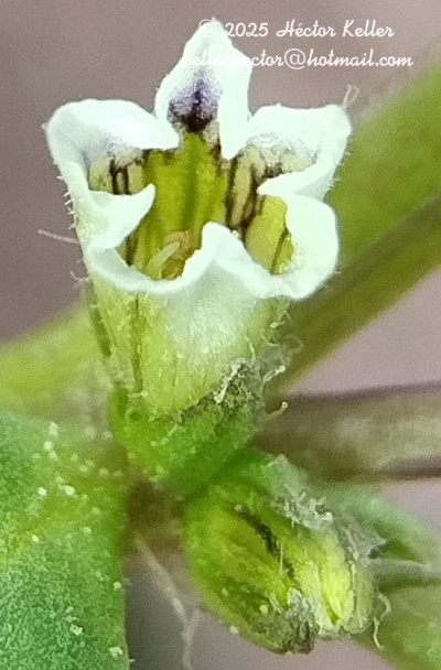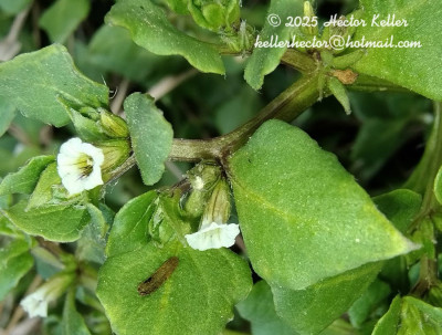 Hierbas anuales, procumbentes, pubescentes; tallos hasta de 1,50 m de largo. Pecíolos cortos o hasta de 10 mm; láminas rómbicas, de 15-25 × 10-20 mm. Flores sésiles, 2 por nudo; cáliz ca. 5,5 mm, 2 lóbulos casi nulos (uno ca. 2 mm) y 2 mayores, subiguales (de 4-6 × 0,5-1 mm); corola blanca de 7-9 mm, limbo ca. 5 mm de diámetro; par inferior de estambres de 3 mm, par superior de 2,5 mm y el impar de 1,5 mm, anteras de 0,5-0,75 mm de diámetro, filamentos con tricomas simples y ramificados; gineceo ca. 4,5 mm. Fruto de 4-5 × 2 mm, concrescente con la axila; cáliz fructífero 5-nervado, lóbulos transformados en espinas; semillas de 3-3,5 × 1-1,5 mm; embrión recto o levemente curvo.
